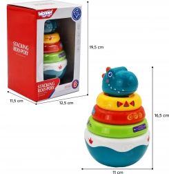 Hračka Woopie Dino hromádka rozvíjí smysly vašeho dítěte! Zaměřuje se na rozvoj rovnováhy a dotyku, zatímco nabízí zábavu při skládání až 6 různých prvků.