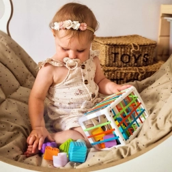 Objevte zábavnou a chytrou hračku pro nejmenší: elastickou senzorickou kostku WOOPIE. Děti do ní mohou vkládat a vyjímat dílky přes pružné pásky i klasický sorter tvarů a písmen. Hra přirozeně rozvíjí smysly, jemnou motoriku a zvědavost. Ideální pro děti od 18 měsíců, komplet obsahuje 15 dílů v pestrých barvách.