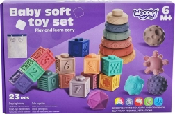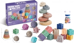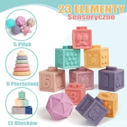 - 23 dílů pro pestré smyslové hraní a stavění
