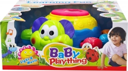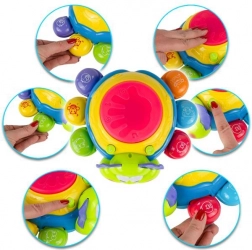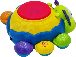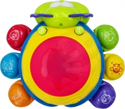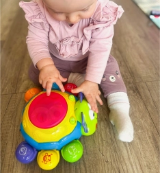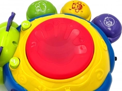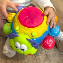 Světelné a zvukové efekty aktivujeme stisknutím bubnu na vrchu hračky, což podporuje koordinaci ruka-oko a kognitivní schopnosti dětí od nejmladších let.