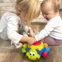 Tato interaktivní hračka je navržena tak, aby pomohla dětem s učením lezení a chůze. Díky senzoru rozpozná překážky a změní směr, čímž láká dítě, aby se pustilo do pohybu a pokoušelo se ji chytit.