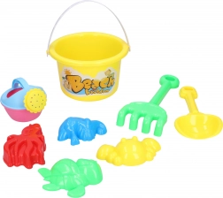 - 8 dílů v balení: kyblík s obrázkem, lopatka, konvička, hrabičky a 4 formičky