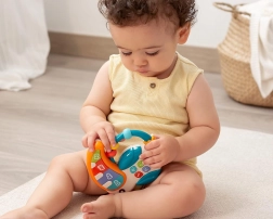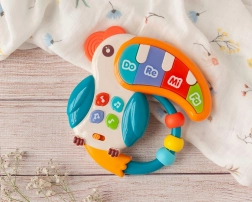 Čtyři barevné klávesy přehrávají tóny a krátké melodie, které podporují rytmus, sluchové vnímání a první hudební krůčky.