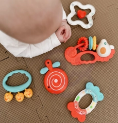 Každé chrastítko a kousátko disponuje unikátním designem, který dítěti přináší rozmanitost a zábavu.