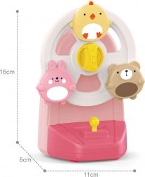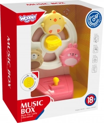 Kuřátko, králíček a medvídek se při spuštění roztočí a doprovodí dítě příjemnou melodií pozitivky. Zábava, která stimuluje zrak i sluch.