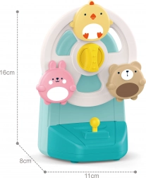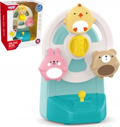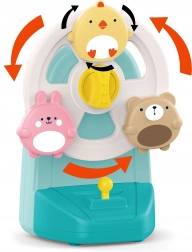 Dítě snadno zapojí otočný mechanismus pomocí žlutého ovladače, pozoruje pohyb zvířátek a trénuje jemnou motoriku i koordinaci oko–ruka.