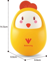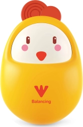 Chytrá roly-poly konstrukce zajistí plynulé houpání po každém postrčení, kuřátko se vždy vrátí do vzpřímené polohy.