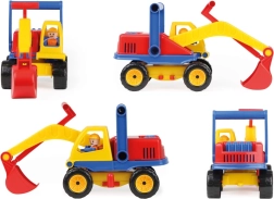 Barevná dětská koparka o délce 35 cm s otočnou horní částí, funkčním ramenem a figurką řidiče v kabině. Disponuje 2 nápravami, blokací otoče a praktickou rukojetí za kabinou pro snadné ovládání – ideální pro pískoviště i domácí hraní.