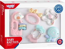 Sada WOOPIE Baby nabízí promyšlenou kombinaci kousátek a chrastítek, které ulevují citlivým dásním a zároveň stimulují dětské smysly. Různé tvary a povrchy podněcují přirozenou zvědavost, podporují koordinaci ruka–oko a jemnou motoriku. Pestré barvy a jemné zvuky chrastítek pomáhají rozvíjet pozornost a vnímání.