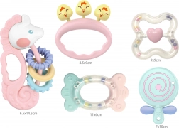 - 5 různých kousátek–chrastítek pro pestrou stimulaci