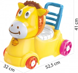 Rozkošný žlutý oslíček motivuje děti k pohybu, zlepšuje rovnováhu a koordinaci a podporuje samostatnost. Díky praktické rukojeti a stabilnímu opěradlu se hodí jak pro první krůčky, tak pro bezpečné odrážení a jízdu po bytě.
