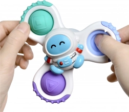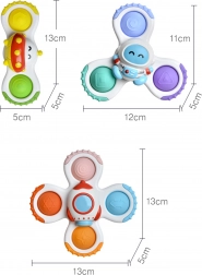 Sada dětských spinnerů Woopie přináší vesmírné téma s motivy rakety, kosmity a ufo. Tyto plastové hračky jsou skvělou volbou pro hraní ve všech prostředích. Spinner disponuje gumovými prvky k mačkání, které povzbuzují rozvoj smyslů. Díky přísavkám se hračky jednoduše upevňují na různé povrchy, což je ideální na cesty nebo při koupání ve vaně. Elastičnost ložisk zaručuje plynulý a dlouhotrvající pohyb bez námahy.