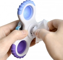 Sada tří barevných spinnerů od značky Woopie nabízí nejen zábavu, ale i rozvoj smyslového vnímání. Díky přísavkám je lze snadno připevnit na různé povrchy (např. okno či vanu), což umožňuje všestranné možnosti použití. Spinner zajišťuje dlouhodobý, plynulý obrat a je ideální pro zlepšení jemné motoriky a koordinace oka a ruky dítěte.