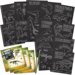 Objevte kouzlo fantastických motivů s vyškrabovacím deníčkem DinosArt. Každá stránka nabízí umělecké plátno připravené ke kreativitě.