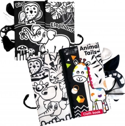 Měkké stránky se šustivými vložkami, oušky a ocásky podporují smyslové vnímání a jemnou motoriku.