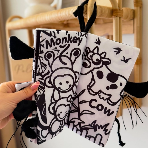 Černobílé obrázky se zvířátky jsou ideální pro novorozence a pomáhají rozvíjet zrakovou ostrost a soustředění.