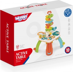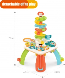 Interaktivní stolek pro děti kombinuje vzdělávací panel s senzorickými prvky a skluzavkou pro míčky. Barevné a zábavné provedení osloví jak chlapce, tak dívky. Dětský design stolu spojuje zábavu s učením, což pomáhá rozvíjet motorické a manuální dovednosti, poslech i rozumění světě. Je to ideální hračka pro stimulaci rozvoje dítěte.