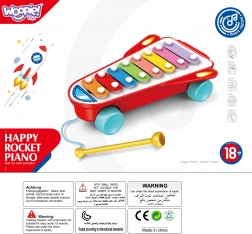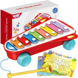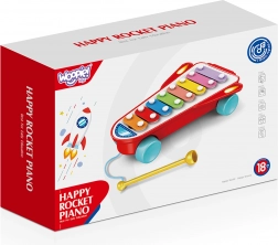 Xylofon Kosmická Raketa Červená je ideální pro děti od 18 měsíců věku. Tento dvoufunkční nástroj může sloužit také jako tahací hračka. Barevný a atraktivní design láká ke hře a díky pevným kolečkům ji děti mohou snadno tahat za sebou. Vyrobeno z bezpečných materiálů, xylofon nabízí čistý a dlouhotrvající zvuk a obsahuje 8-tónovou stupnici. Součástí balení jsou tři oboustranné notové kartičky s oblíbenými melodiemi a palička na hru.