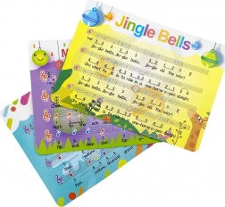 Obsahuje tři oboustranné notové karty s populárními melodiemi, které podporují muzikální talent vašeho dítěte.