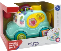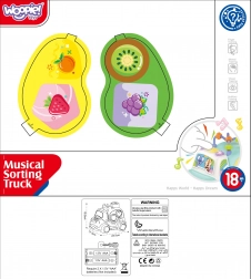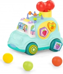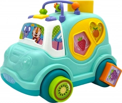 Na stranách autíčka jsou otvory různých tvarů, ke hře jsou přiloženy barevné kostky, které pasují do těchto otvorů. Dítě může hrát hru přizpůsobování kostek podle tvaru, což mu pomůže rozvíjet koordinaci ruky a oka a rozpoznávání barev a ovoce.