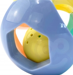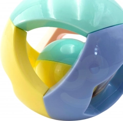 Kulatá konstrukce se snadno kutálí a motivuje miminko k pohybu. Otevíraná struktura pomáhá trénovat úchop a koordinaci oko–ruka.