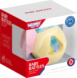 Pastelová chrastící koule WOOPIE je ideální první hračka pro miminka od narození. Kombinuje funkci chrastítka a kousátka 2v1, má měkké gumové úchyty pro snadné držení a bezpečné zaoblené hrany. Při pohybu vydává příjemný zvuk, podporuje lezení a toulání za míčem, rozvíjí jemnou motoriku, koordinaci oko–ruka i smyslové vnímání. Vyrobena z kvalitních, bezpečných a snadno omyvatelných materiálů.