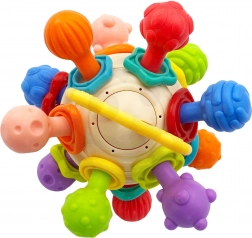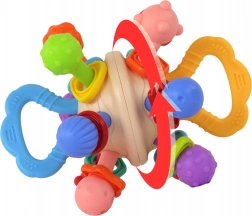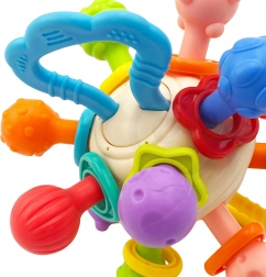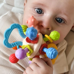 Kombinuje vlastnosti gryzátka a chrastítka, nabízí dětem různé způsoby zábavy.