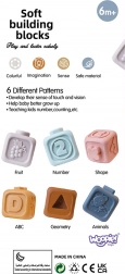 Kostky jsou ideální jako kousátko – ulevují dásním a zároveň vybízejí k objevování. Při stlačení vydají zvuk, který učí principům příčina–následek. Sada se hodí na zem, do postýlky i do vany. Děti z nich postaví věž, třídí je podle čísel či reliéfů a trénují kreativitu.