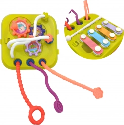 Snímatelný panel s mini xylofonem probouzí lásku k hudbě a podporuje rytmus i sluchové vnímání. Dítě si trénuje přesnost úchopu i koordinaci při úderech do kláves.