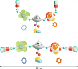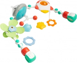 Různorodé závěsné prvky reagují na dotyk, podporují jemnou motoriku, koordinační dovednosti i pochopení příčina–následek. Některé hračky lze využít jako bezpečná kousátka. Kvalitní materiály šetrné k dětem a snadné upevnění z oblouku dělají praktického pomocníka pro každý den.