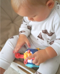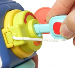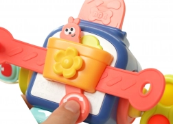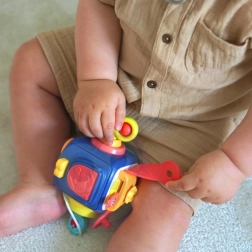 - Podporuje rovoj motorických dovedností prostřednictvím uchopení, tahání, otáčení a stisku různých částí
