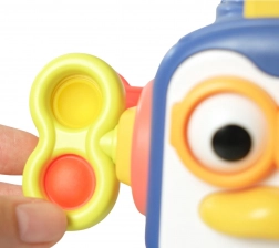 Na hlavě pingvina je po stisknutí osa s vyskakujícím pejskem, který přináší další zábavu a interaktivitu.