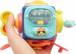 Kostka nabízí různé textury, vzory a barevné prvky, které poskytují stimulační smyslové zážitky a pomáhají rozvíjet zrak, sluch a motoriku dítěte. Interaktivní prvky jako vyskakující pejsek nebo zvonečky přinášejí zvukovou stimulaci. Hračka zábavně a komplexně podporuje vývoj dítěte, což ji činí vynikající volbou.
