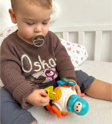 Rotující astronaut, spinner, posuvné a mačkací prvky udržují pozornost dítěte a podporují přirozené učení hrou.