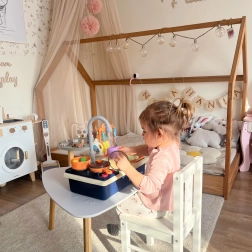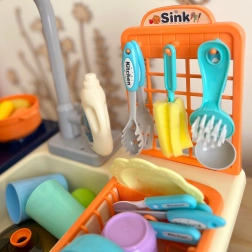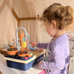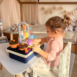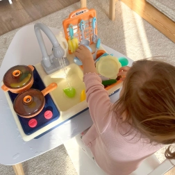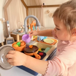 Herní kuchyňka s dřezem 2v1 od značky WOOPIE umožňuje dětem vařit a mýt nádobí jako rodiče. Realistické funkce a ruchové prvky jako otočné kohouty a funkční kohoutek se skutečnou vodou zajišťují hodiny zábavy a učení.