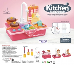 Potěšte své děti touto úžasnou kuchyňskou sadou, která jim umožní prožívat kuchyňské dobrodružství. Tato hračka zaujme především svojí realistickou simulací kuchyňských činností, podpořenou pohyblivými prvky a funkčním kohoutkem. Stačí nalít vodu do nádoby a dívat se, jak se vaše dítě radostně hraje.