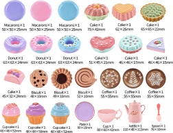 Obsahuje až 26 různých prvků, které zahrnují čajový set, kávu a různé sladkosti.