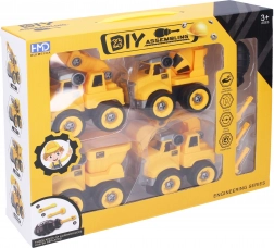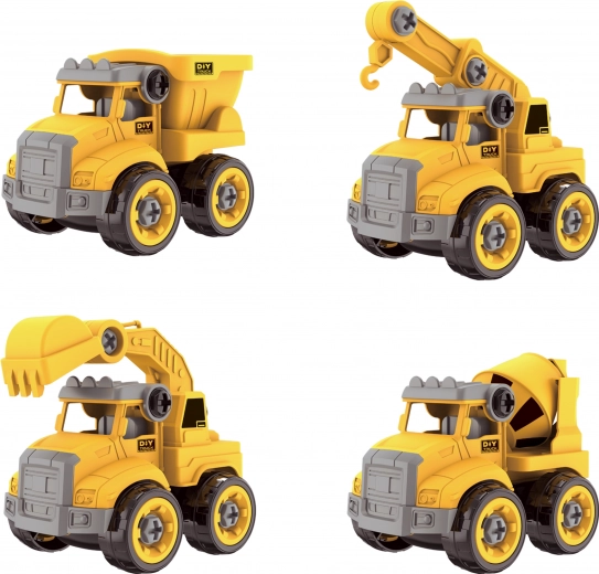 Zábavná sada šroubovacích vozidel pro malé stavitele obsahuje 4 stavební auta – jeřáb, domíchávač, sklápěč a bagr. Každé auto má volná kola pro plynulou jízdu a díky šroubováku se třemi nástavci si děti mohou vozidla snadno rozebírat a znovu skládat. Kompaktní velikost 13 cm je ideální do dětských rukou i na cesty.