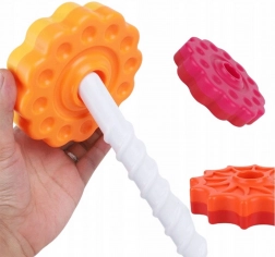 Spirálová věž WOOPIE je vyrobena z barevných prvků, které jsou umístěny na tyči a šroubovány dolů. Tato hračka je navržena tak, aby byla trvanlivá a bezpečná, což zaručuje dlouhé hodiny zábavy pro vaše dítě. Sada obsahuje 6 kroužků a základnu v různých barvách a tvarech, což umožňuje stavět věž různými způsoby. Stavění pyramidy podporuje logické myšlení a plánování dalších kroků.