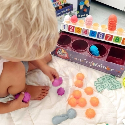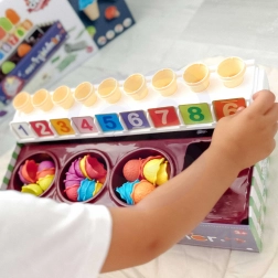 Hračka umožňuje učení čísel a barev prostřednictvím stohovacích a třídicích aktivit.