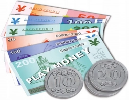- Platební karta, bankovky, mince, krabička se sušenkami, police s artikly