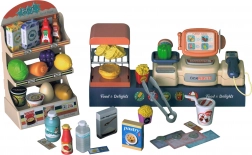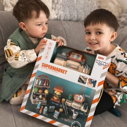 S touto realistickou sadou supermarketu si děti vyzkouší roli prodavače i zákazníka. Pokladna se skenerem, funkční zásuvkou na peníze a papírovými bankovkami a mincemi učí základům finanční gramotnosti a sociální interakci. Součástí je také váha a bohatá nabídka potravin.