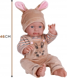 Tato realistická panenka miminko v králičím oblečku je stvořená pro láskyplné hraní. Obleček s kapucí s oušky, body s roztomilým motivem a měkké botičky vytvářejí něžný vzhled, který děti milují. Díky pohyblivým končetinám můžete panenku snadno posadit i postavit, což rozšiřuje možnosti hry.