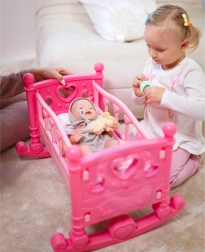 Kolébka je vhodná pro panenky o délce do 40 cm a šířce 19,5 cm. Skvělý nápad na dárek pro každé dítě, které rádo pečuje o své panenky!