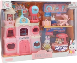 Králičí vila od značky WOOPIE je snovým herním setem pro děti od 3 let. Barevný zámek s třemi podlažími se otevírá na klíček a nabízí spoustu scénářů k hraní – od péče o králíčí rodinku po objevování tajných zákoutí s balkonky a okny. Důmyslné detaily jako vnitřní houpačka či balon na střeše podněcují fantazii a zaručí nadšené hraní.
