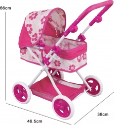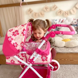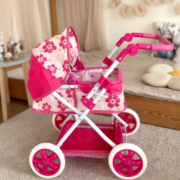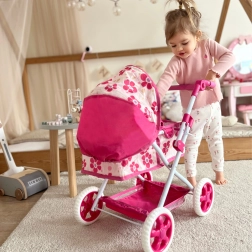 Kočárek je navržen s důrazem na bezpečí a pohodlí – má lehký, ale stabilní rám a prostornou korbičku pro panenky do 55 cm. Barevný květinový vzor potěší každé dítě a podpoří kreativitu, empatii a sociální dovednosti.