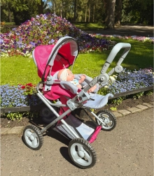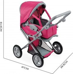 Stylový růžový kočárek pro panenky WOOPIE ROYAL potěší každou malou pečovatelku. Nabízí 3v1 využití – hluboký kočárek, sportovní sezení a vyjímatelné nosítko/tašku. Má nastavitelnou rukojeť pro různé výšky dětí, tichá kola pro plynulou jízdu, skládací stříšku i rám a praktický košík na drobnosti.