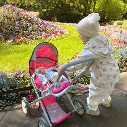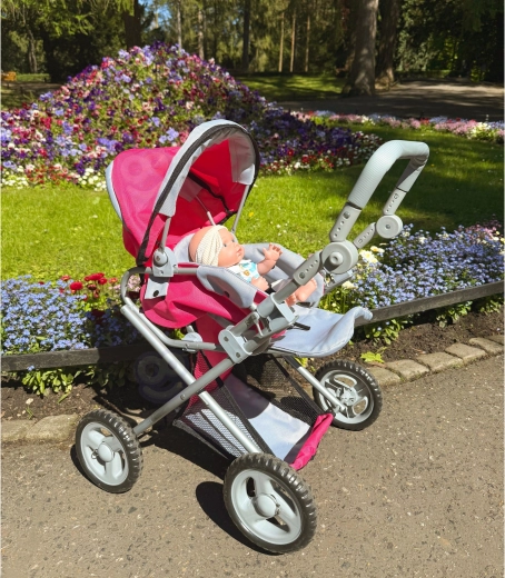 Hledáte kočárek pro panenky, který roste s dítětem a podpoří fantazii při hře na rodinu? WOOPIE ROYAL v něžné růžovo‑šedé kombinaci přináší realistické detaily a pevnou, ale lehkou konstrukci pro bezpečné a pohodlné vožení oblíbených panenek.