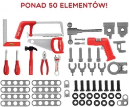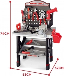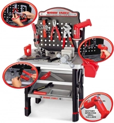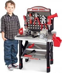 Stůl dílny je navržen tak, aby naučil děti, jak správně používat nástroje a porozumět jejich funkci. Výborná hračka pro samostatné i společné hraní s rodiči či kamarády.