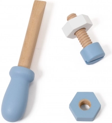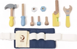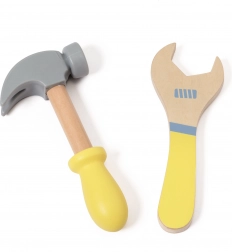 Obsahuje kladivo, šroubovák, měřítko, klíč, šrouby a matice, které umožní dětem hrát různé role.
